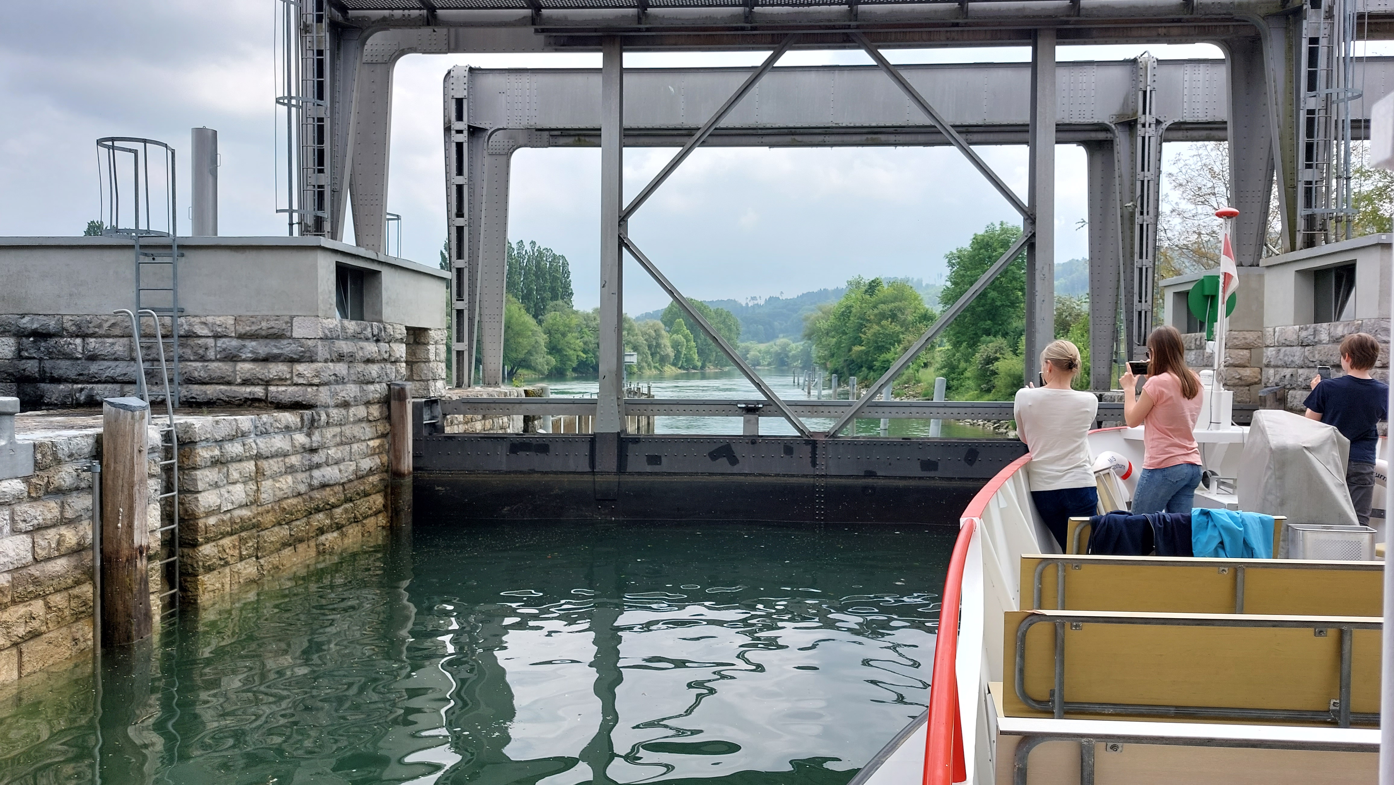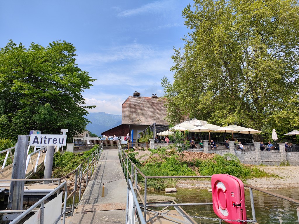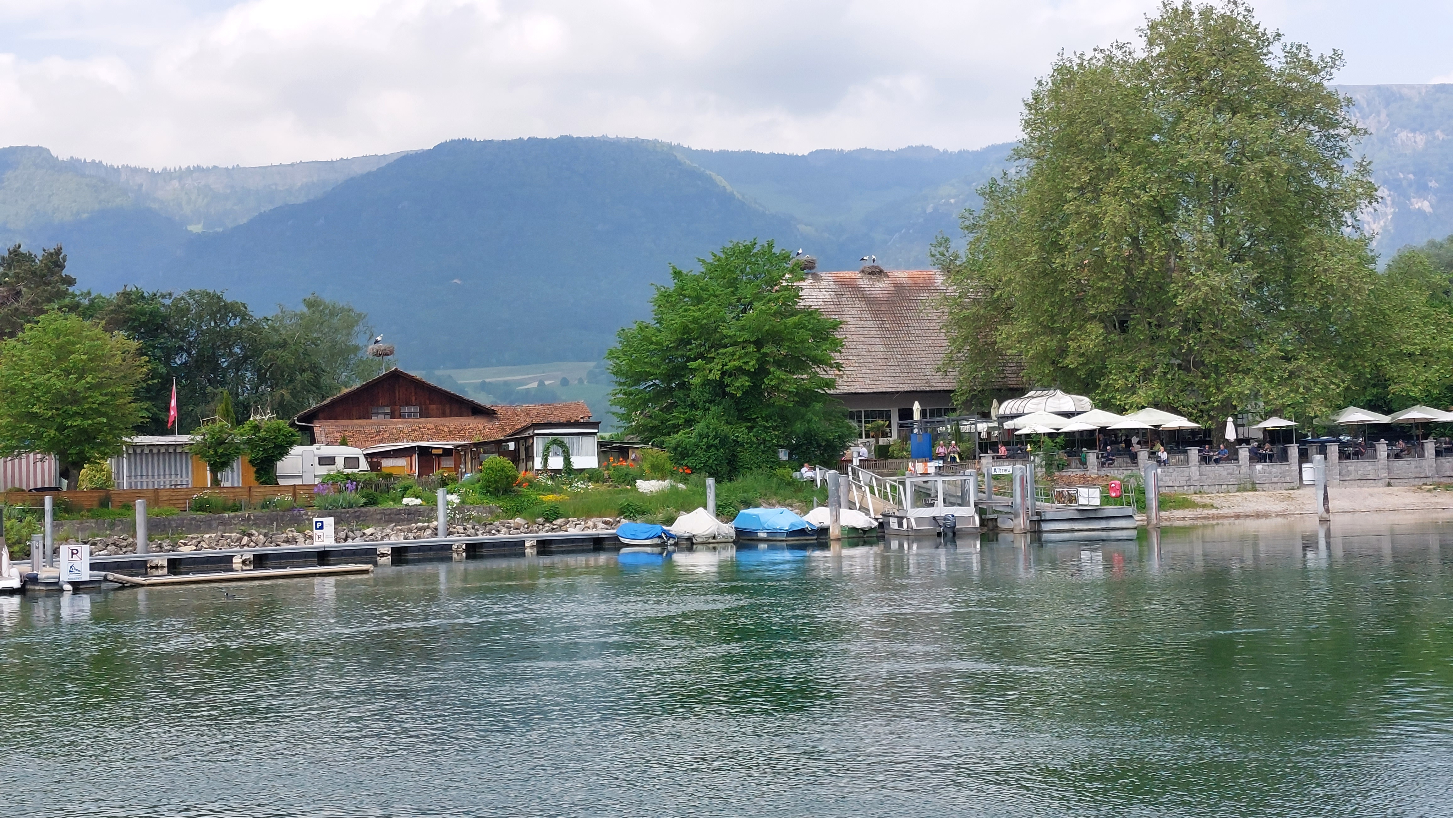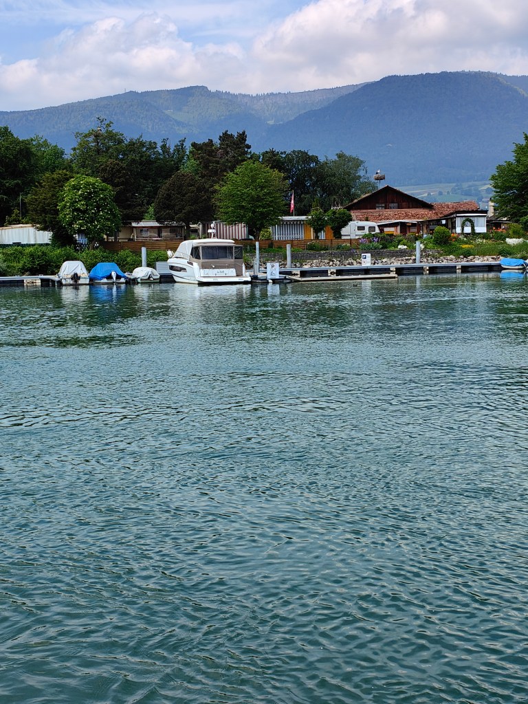 En croisière – On découvre successivement, en descendant la rivière, l’impressionnant passage d’écluse à Port, la petite ville historique de Büren an der Aare, la colonie de cigognes d’Altreu.